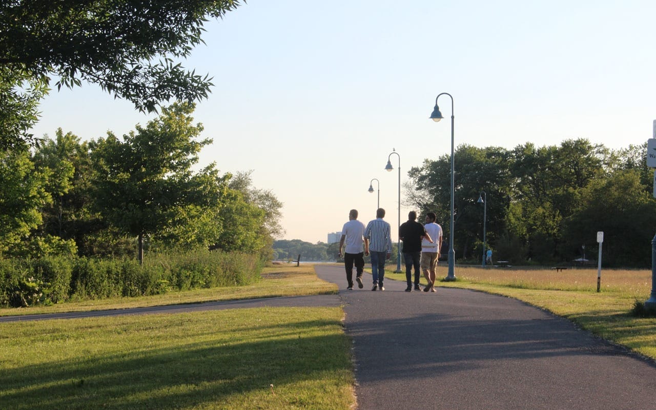 A lively park with sports facilities, a playground, and off-leash dog areas. The park’s highlights include the skating rink, outdoor pool, and various local events.