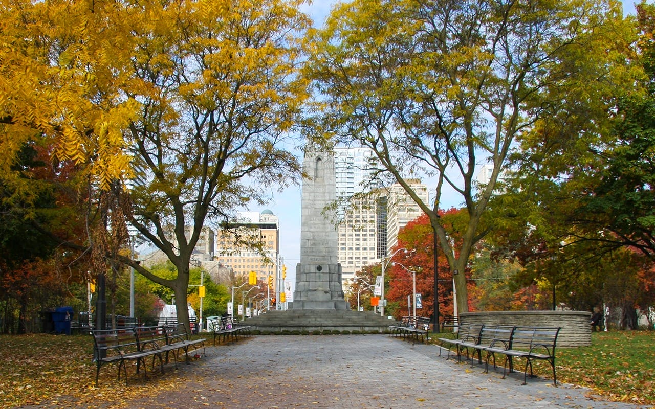 Centrally located, home to Ontario’s legislative building, and surrounded by historic buildings. It lets you stroll through the gardens, monuments, and shaded areas, making it one of the favourite parks in Toronto among locals and tourists.
