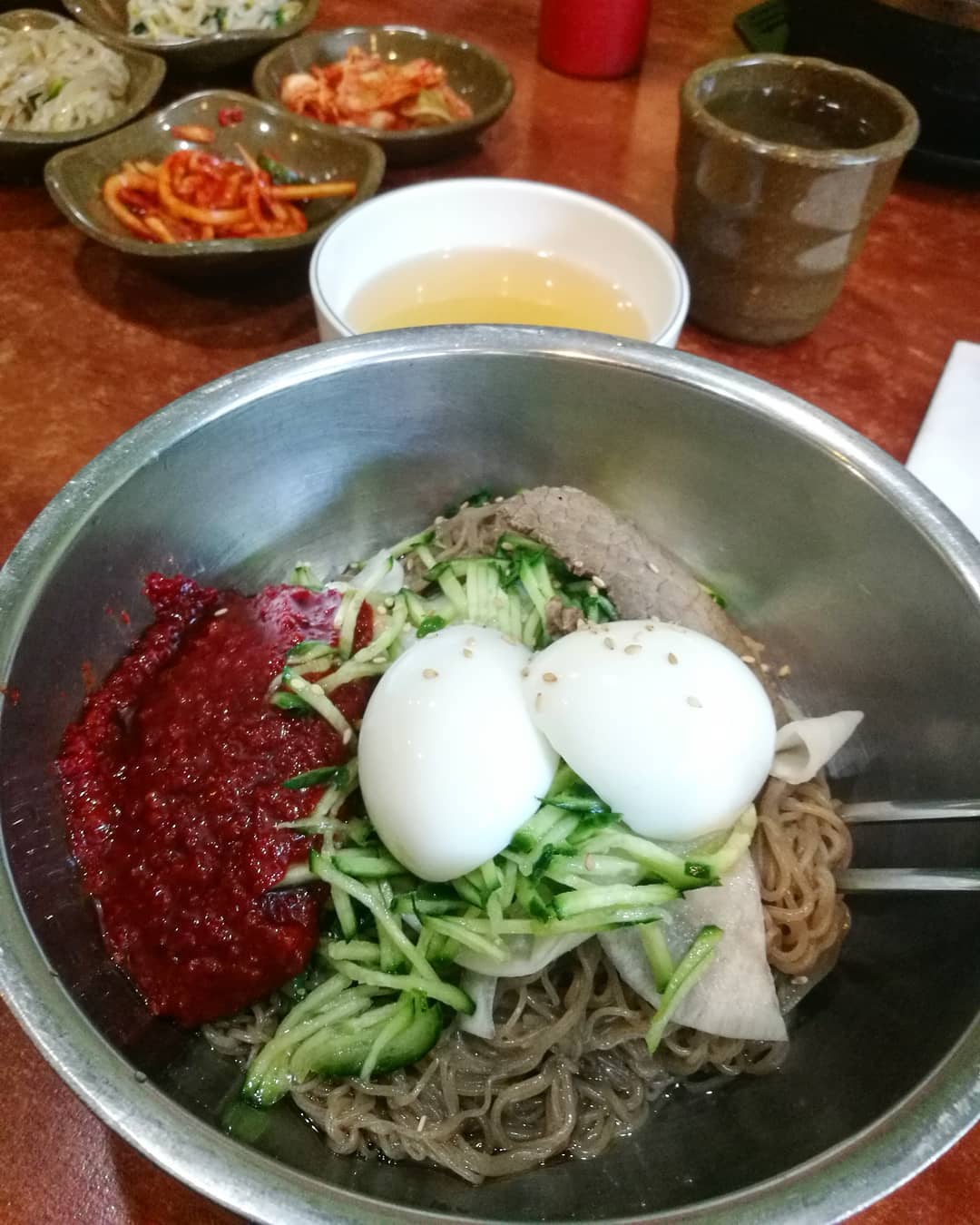 Lim Ga Ne may be best known for its BBQ, but don’t sleep on their cold noodles! Their naengmyeon is simple and flavorful, served with a cold, tangy broth that refreshes you.