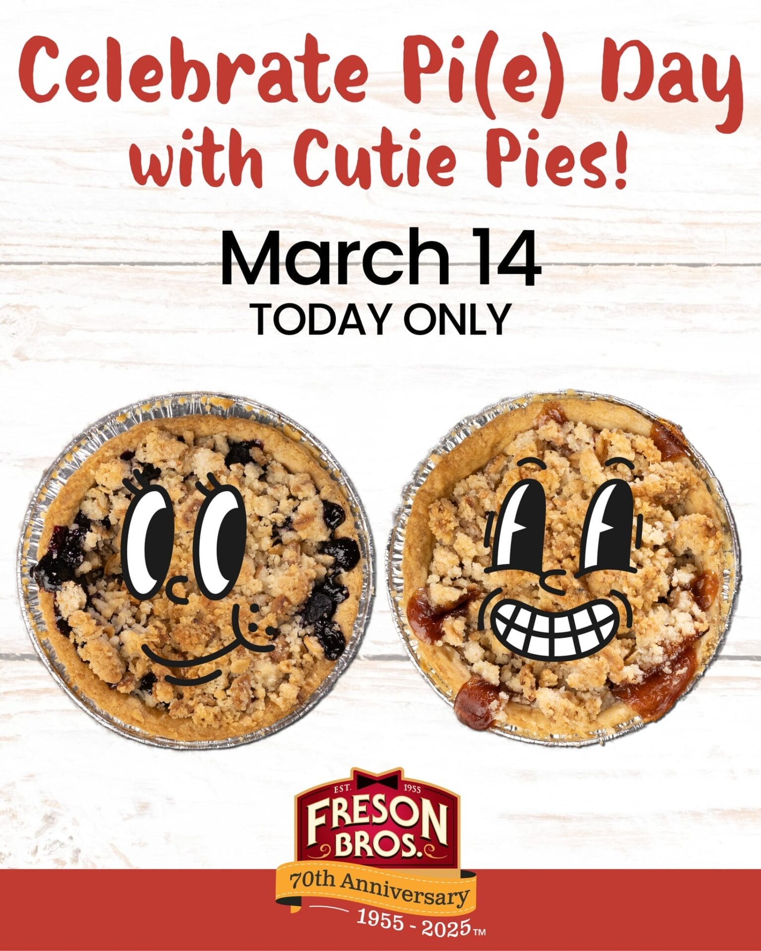 Features full-sized Pi Day pies in Maple Apple Sour Cherry and Peach Mixed Berry. Available for one day only, with pre-orders encouraged.